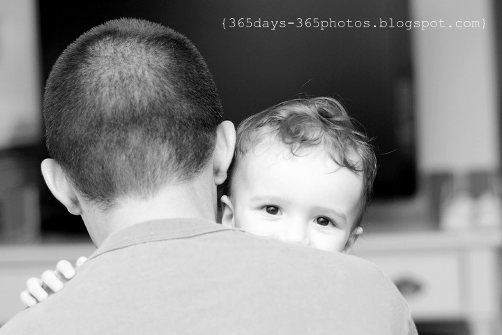 I posted a similar photo a few months ago. Love how you can see the smile in his eyes as he greets Dad coming home from work.